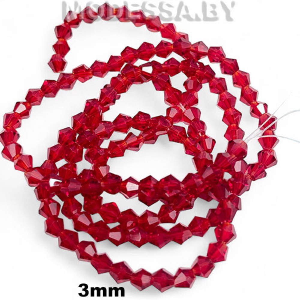 Бусины стеклянные граненые на нити биконусы (1нить=128шт), диаметр 3мм. Идеально подойдут для плетения браслетов, чокеров, колье, украшения ободков и других ювелирных изделий. Граненые хрустальные бусины кристаллы очень ярко переливаются, блестят. Бусины на нити так же подойдут для декора одежды и предметов интерьера и др.