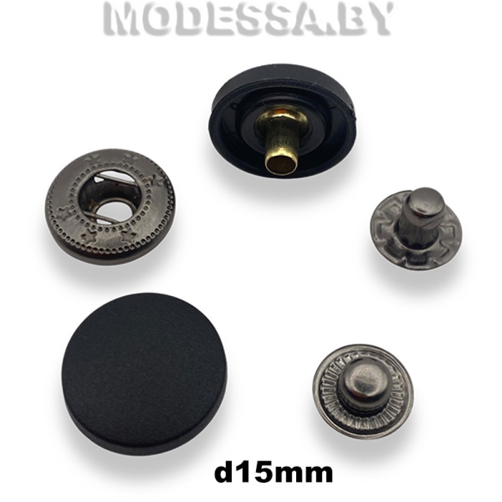 Кнопка металлическая с пластиковым матовым верхом "Альфа", артикул: 27888.15. Диаметр 15мм. Кнопки для одежды – часто применяемый вид застёжки. Их используют для курток, рубашек, платьев, а также сумок и т. д. Преимущество кнопки в быстром и легком расстегивании. Кнопка состоит из 4-х частей. Установка застёжки кнопки на одежду производится с помощью пресса и специальных насадок. Не рекомендуется устанавливать кнопки на очень тонких и непрочных тканях.
