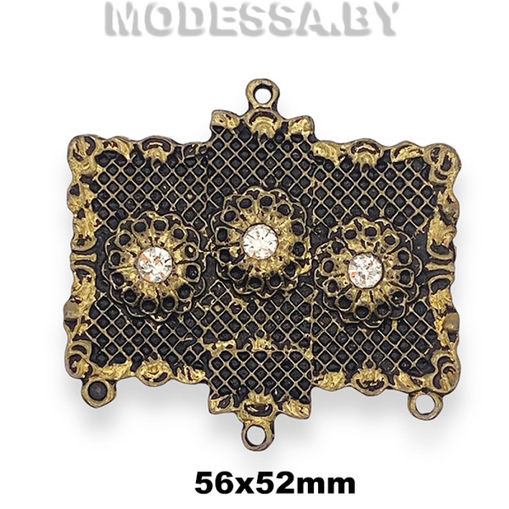 Украшение металлическое со стразами, артикул: 8 S. Размер 56х52мм. Может применяться как декор для одежды, кожгалантерейных изделий, головных уборов, обуви, сумок и др.