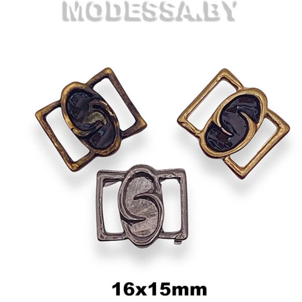 Пряжка металлическая, артикул: 41. Размер 16х15мм. Ширина отверстия для протяжки 9мм. Может применяться как декор для одежды, кожгалантерейных изделий, головных уборов, обуви, сумок и др.