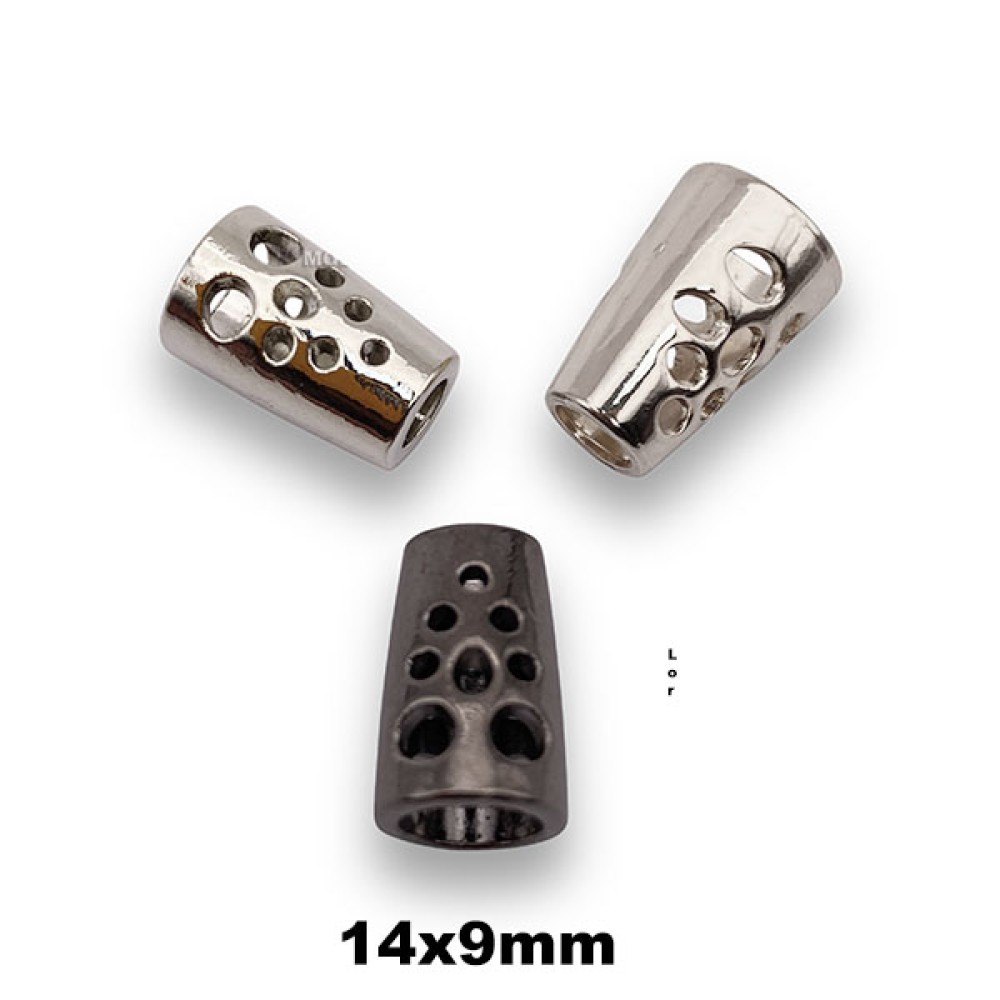 Наконечник металлический, артикул: 833R. Размер 14х9мм. Наконечник позволяет зафиксировать шнур так, чтобы он не распускался и не потерялся в кулиске. Кроме того, он придает одежде и аксессуарам со шнуровкой законченный вид. Используется при шитье рюкзаков, одежды для спорта, отдыха, верхней или детской одежды.
