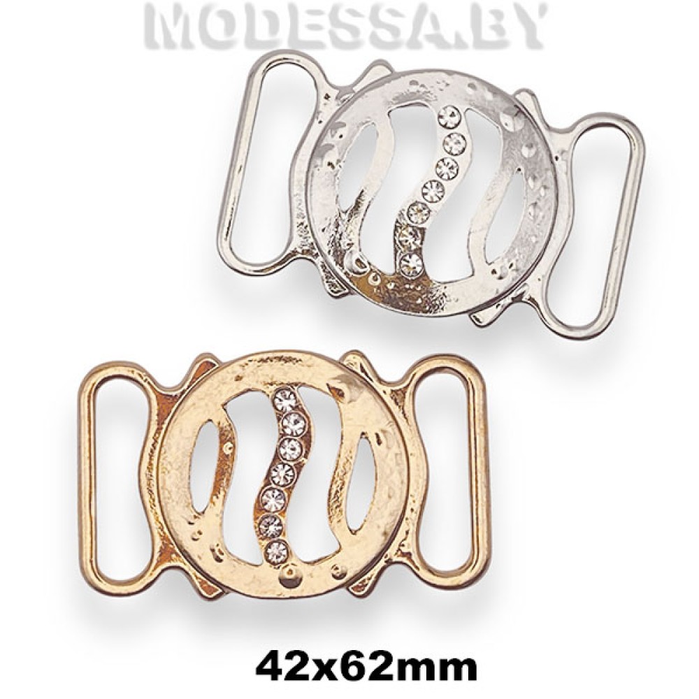 Пришивная декоративная пряжка со стразами, артикул: 081047. Размер 42х26мм. Ширина отверстия для протяжки 20мм. Может применяться как декор для одежды, кожгалантерейных изделий, головных уборов, обуви, сумок и др.
