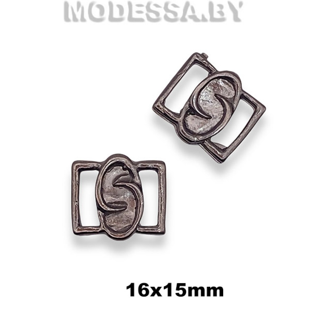 Пряжка металлическая, артикул: 41. Размер 16х15мм. Ширина отверстия для протяжки 9мм. Может применяться как декор для одежды, кожгалантерейных изделий, головных уборов, обуви, сумок и др.