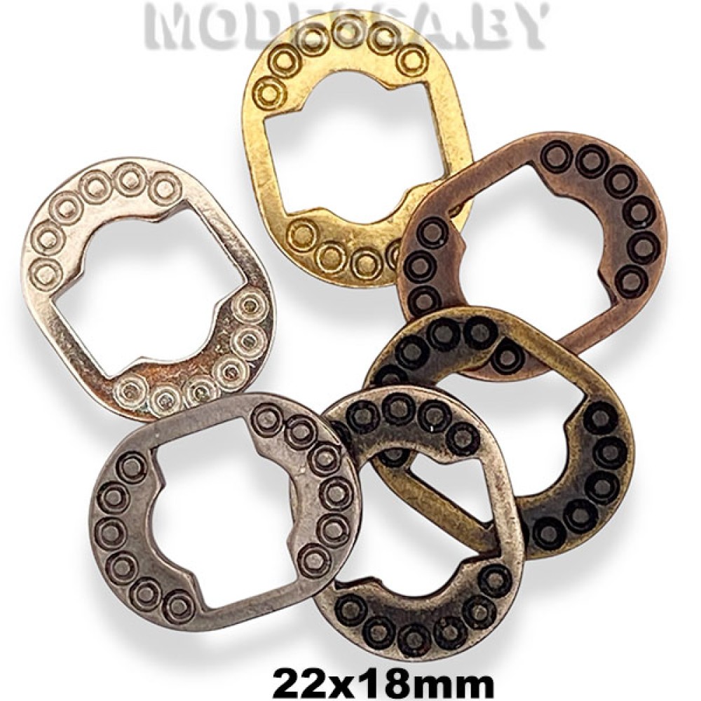 Украшение металлическое, артикул: 110. Размер 22х18мм. Ширина отверстия для протяжки 7мм. Может применяться как декор для одежды, кожгалантерейных изделий, головных уборов, обуви, сумок и др.
