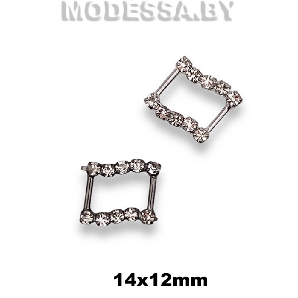 Украшение металлическое со стразами, артикул: 1298 СКВ. Размер 14х12мм. Ширина отверстия для протяжки 5мм. Может применяться как декор для одежды, кожгалантерейных изделий, головных уборов, обуви, сумок и др.