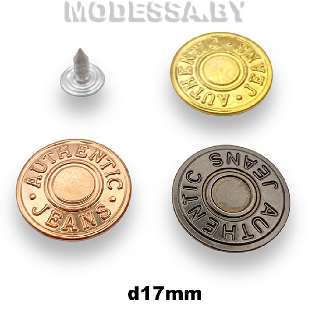 Заклёпка-пуговица металлическая "Jeans Authentic", артикул: 27888.55; 27889.3, на фиксированной ножке. Диаметр 17мм. Джинсовые пуговицы используются при изготовлении одежды и других изделий из джинсовой ткани. Данная пуговица будет эффектно смотреться как на одежде, так и на рюкзаке, сумке.