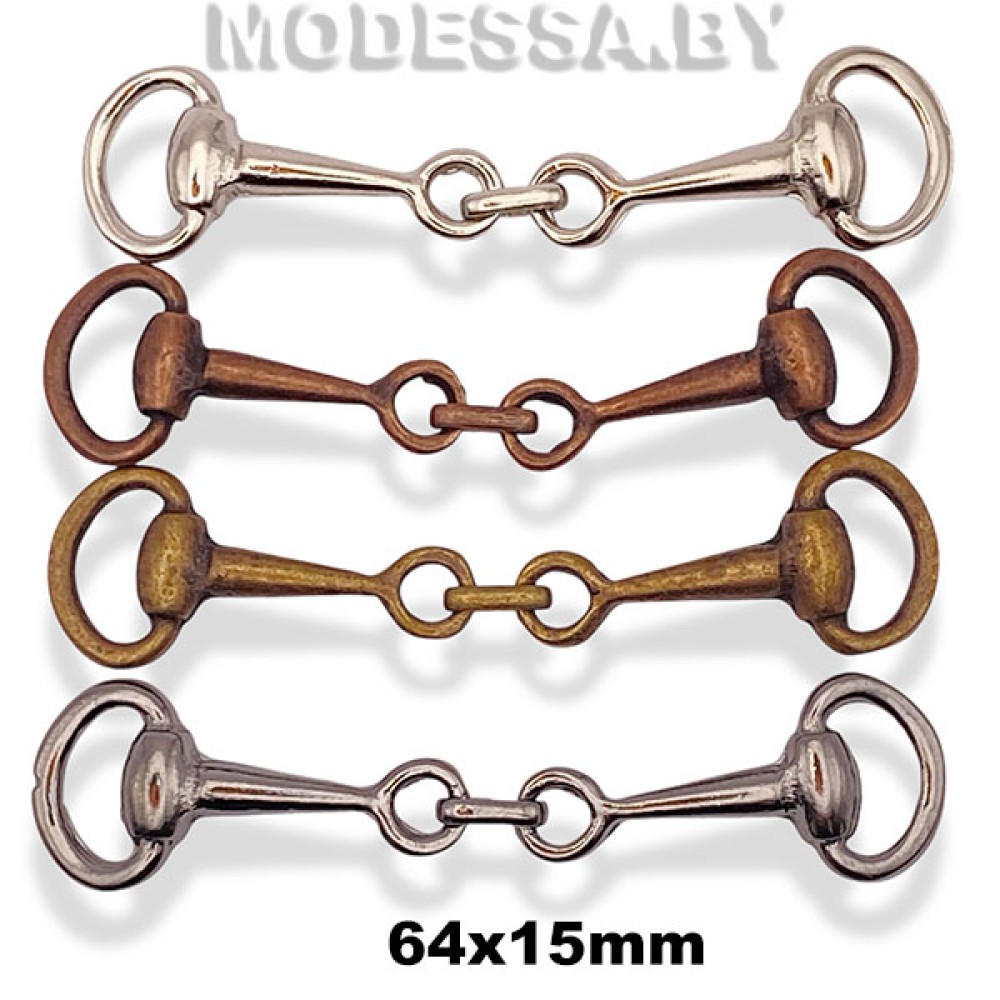 Пришивное украшение металлическое, артикул: 228. Размер 64х15мм. Ширина отверстия для протяжки 10мм. Модель украшения идеально подходит для декорирования горловины блузок, рубашек или платьев, а также для декоративного оформления сумок, аксессуаров и др.