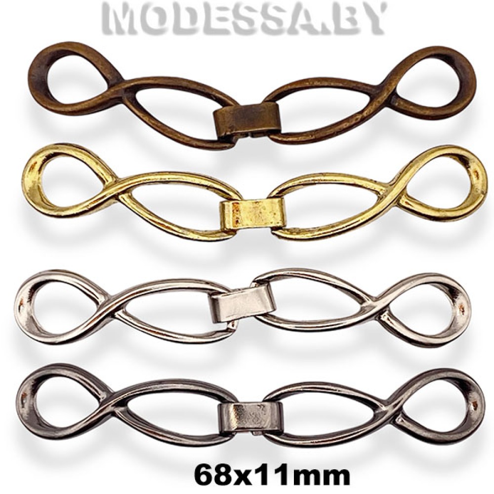 Пришивное украшение металлическое, артикул: 3842. Размер 68х11мм. Ширина отверстия для протяжки 5мм. Модель украшения идеально подходит для декорирования горловины блузок, рубашек или платьев, а также для декоративного оформления сумок, аксессуаров и др.
