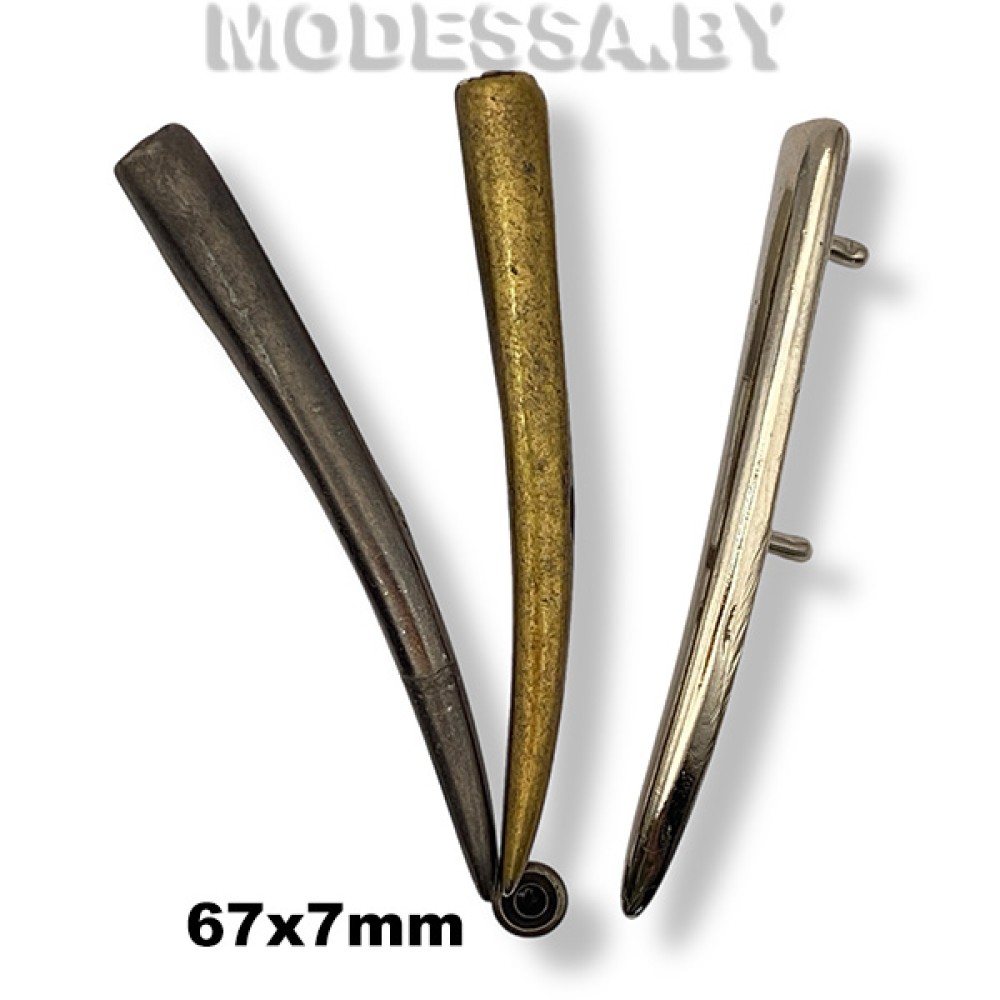 Украшение металлическое на прокол, артикул: 1994. Размер 64х7мм. Используется как декоративный элемент для украшения одежды, кожгалантерейных изделий, головных уборов, обуви и др.