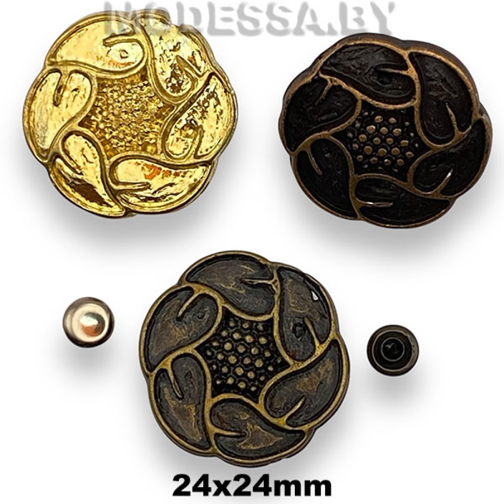 Украшение металлическое на прокол, артикул: 1757. Размер 24х24мм. Используется как декоративный элемент для украшения одежды, кожгалантерейных изделий, головных уборов, обуви и др.