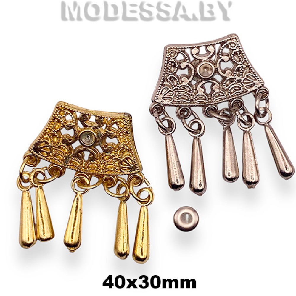 Украшение металлическое на прокол, артикул: 3043. Размер 40х30мм. Используется как декоративный элемент для украшения одежды, кожгалантерейных изделий, головных уборов, обуви и др.