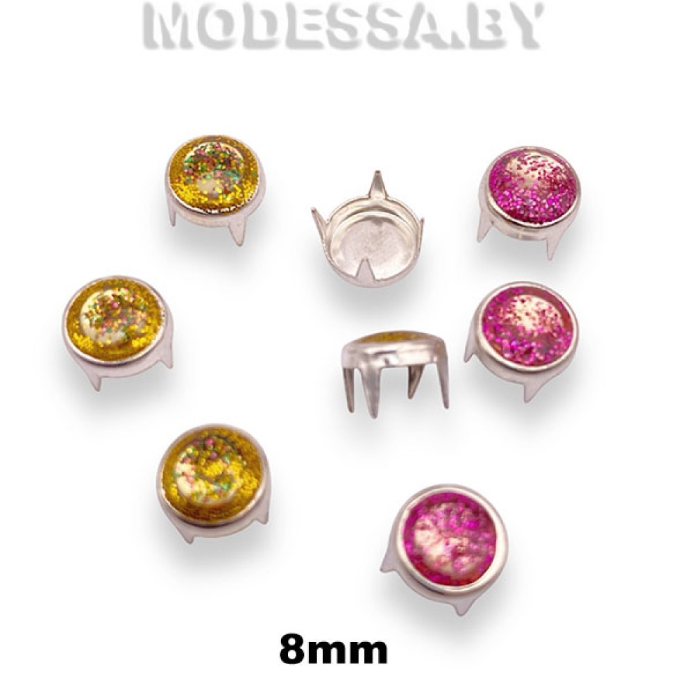 Украшение металлическое на прокол, артикул: 0085 СТМ. Диаметр 8мм. Используется как декоративный элемент для украшения одежды, кожгалантерейных изделий, головных уборов, обуви и др.