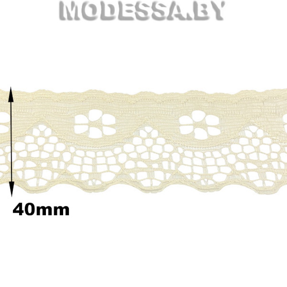 Кружево синтетическое, артикул: G53. Ширина 40мм. Применяется при пошиве одежды, белья и домашнего текстиля, а также используют для декора других материалов.