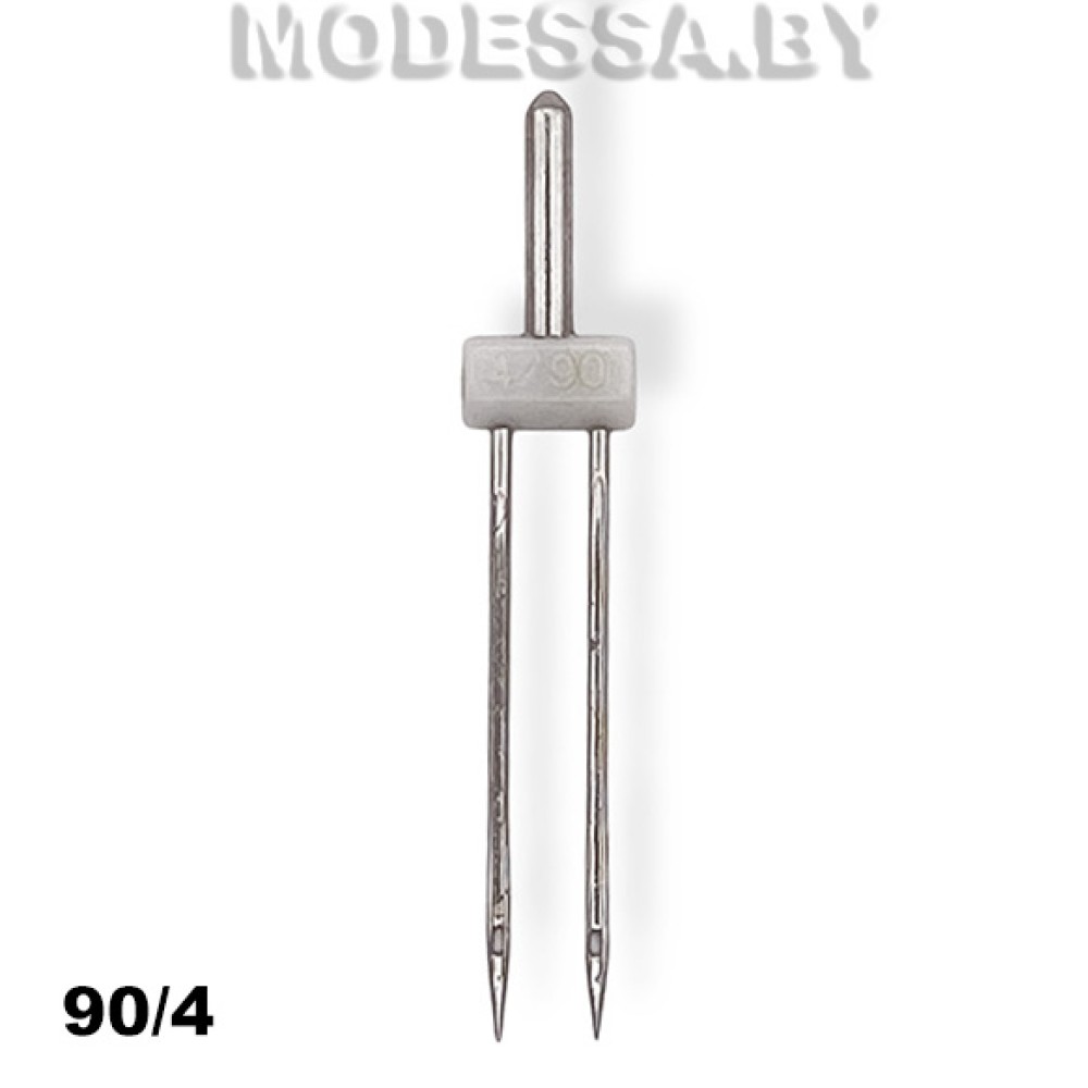 Игла двойная универсальная №90/4 (расстояние между иглами 4мм) для бытовой швейной машины со скошеной колбой. Подходит для шитья универсальных плотных, джинсовых и костюмных тканей.