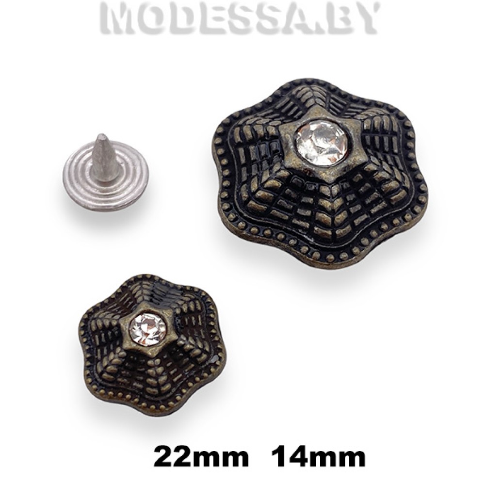 Заклёпки металлические, артикул: 2100335; 1400315. Размер 14х10мм; 22х20мм. Используются при изготовлении одежды и других изделий из джинсовой ткани и др. Будут эффектно смотреться как на джинсовой одежде, так и на рюкзаке, сумке.