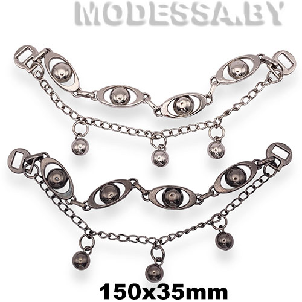 Пришивное украшение металлическое цепочка, артикул: 0373 CKB. Размер 150х35мм. Ширина отверстия для протяжки 7мм. Модель украшения идеально подходит для декорирования горловины блузок, рубашек или платьев, а также для декоративного оформления сумок, аксессуаров и др.