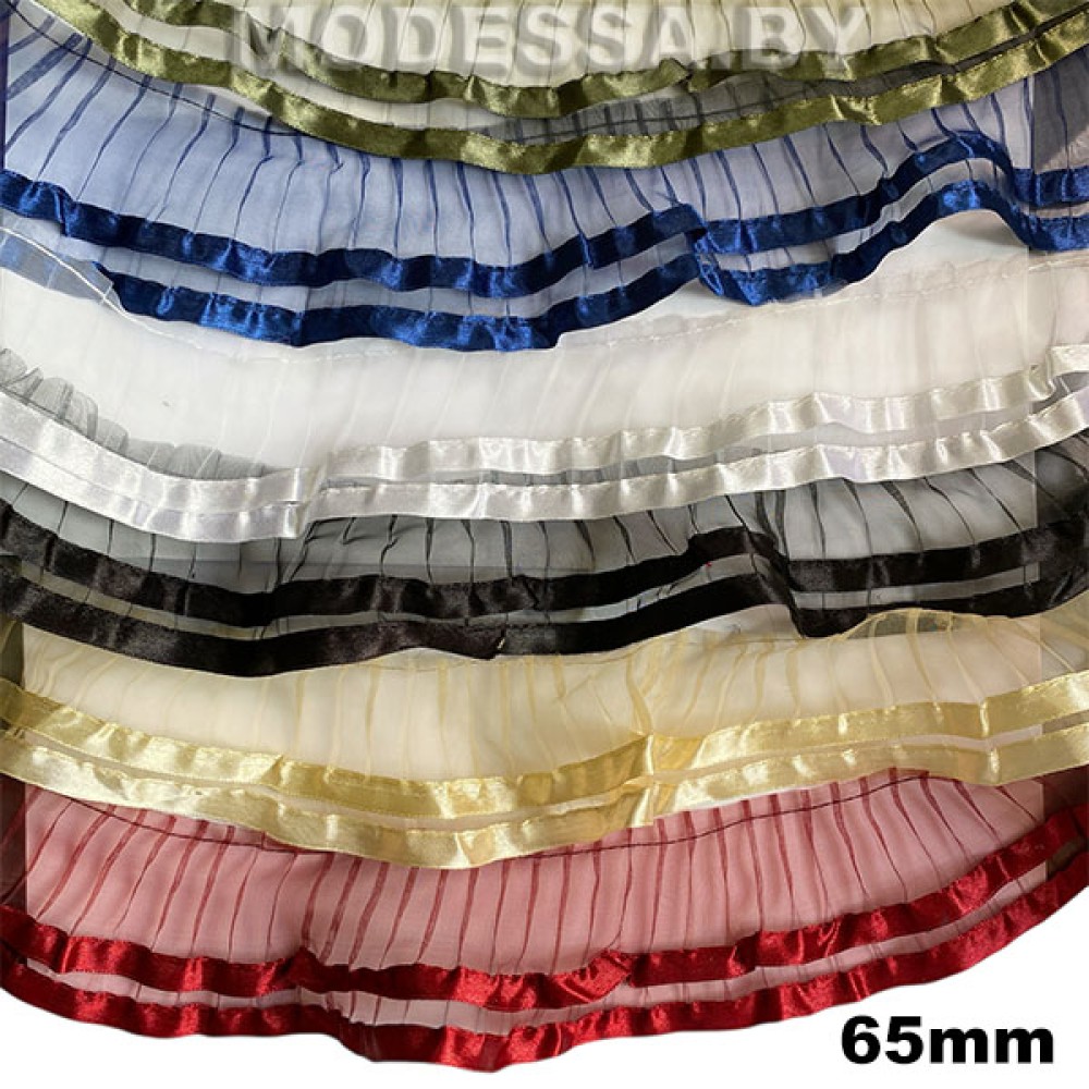 Тесьма декоративная органза c лентой атласной, артикул: 10 S. Ширина 60мм. Используется для декоративной отделки одежды и аксессуаров.