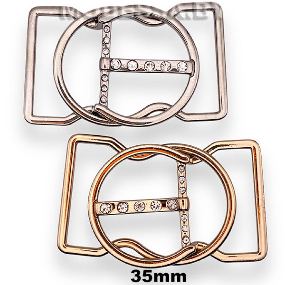 Пряжка-застёжка металлическая, артикул: 22272. Размер в застёгнутом виде 69х42мм. Ширина отверстия для протяжки 35мм. Металлическая пряжка типа разъёмной застёжки подходит для поясов-резинок и поясных ремней из эластичной ременной ленты. Изделие состоит из двух частей: ответной части, закрепляемой на одном конце ремня, и защелкивающейся части, прикрепляемой к другому концу.