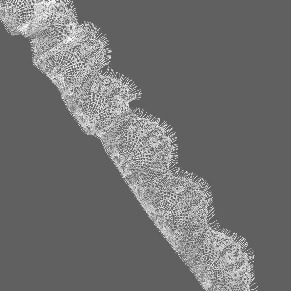 Кружево синтетическое с «ресничками», артикул: А 019 С-1. Ширина 90мм, длина 1 ленты — 3м. Кружево очень нежное, тонкое, воздушное, но в то же время прочное. Тянется лишь слегка за счёт переплетения нитей. Чаще всего применяется для украшения нижнего белья, отделки ночных рубашек, сорочек, также можно декорировать низ платьев, рукава и др.
