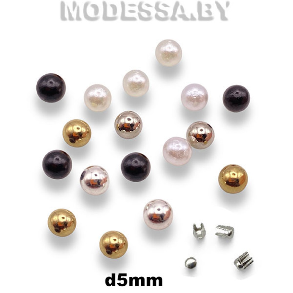 Бусина пластмассовая без отверстия диаметром 5мм. Гладкие бусины установочные на металлических шипах позволяют украсить вещи из текстиля, натуральной или искусственной кожи, пряжи и др. Благодаря шипам бусина надежно удерживается на материале. Нитки при этом не используются и поэтому не портят внешний вид вещей. Чтобы установить украшение на изделии, подберите подходящую матрицу и используйте специальный ручной пресс.