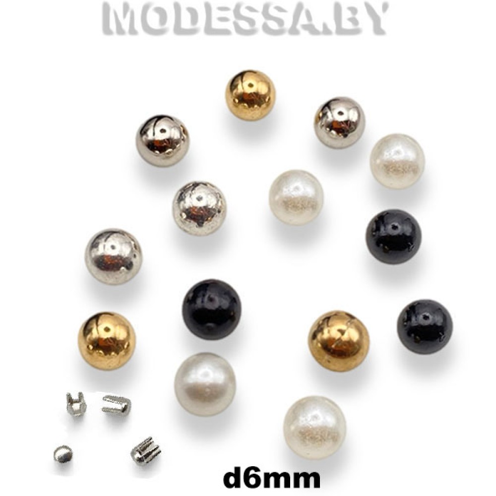 Бусина пластмассовая без отверстия диаметром 6мм. Гладкие бусины установочные на металлических шипах позволяют украсить вещи из текстиля, натуральной или искусственной кожи, пряжи и др. Благодаря шипам бусина надежно удерживается на материале. Нитки при этом не используются и поэтому не портят внешний вид вещей. Чтобы установить украшение на изделии, подберите подходящую матрицу и используйте специальный ручной пресс.