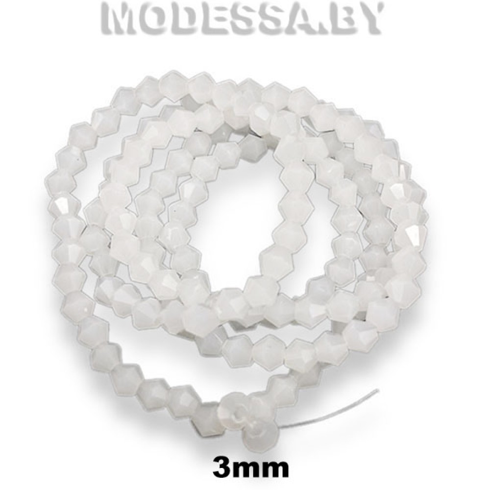 Бусины стеклянные граненые на нити биконусы (1нить=150шт), диаметр 3мм. Идеально подойдут для плетения браслетов, чокеров, колье, украшения ободков и других ювелирных изделий. Граненые хрустальные бусины кристаллы очень ярко переливаются, блестят. Бусины на нити так же подойдут для декора одежды и предметов интерьера и др.