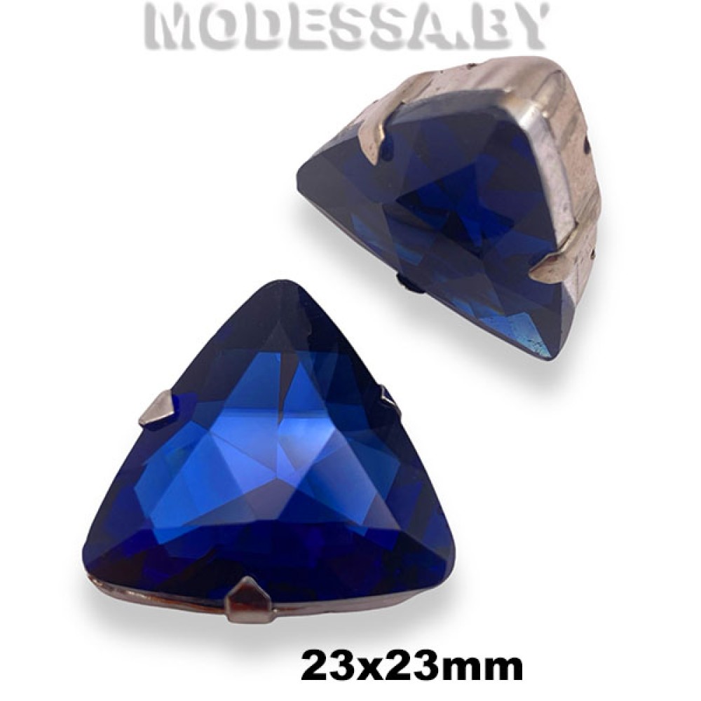 Стразы стеклянные в металлической оправе треугольной формы, артикул: 2233. Размер 23х23мм. Пришивные стразы из стекла прекрасно подойдут для декора одежды и аксессуаров. Благодаря своей яркости и блеску, они добавят изделиям изысканности и элегантности. Крепятся к изделию путём пришивания металлической цапы, в которую вставлена страза.