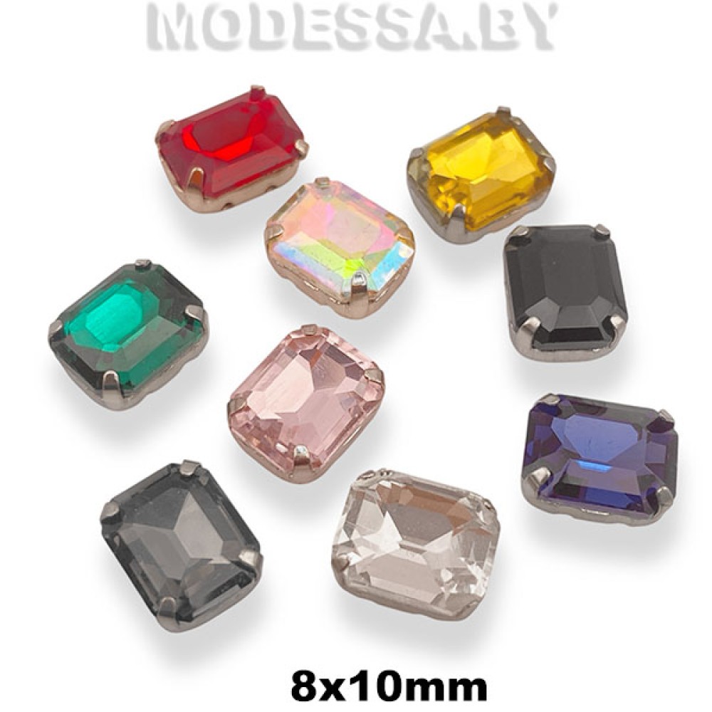 Стразы стеклянные в металлической оправе прямоугольной формы, артикул: 2178. Размер 8х10мм. Пришивные стразы из стекла прекрасно подойдут для декора одежды и аксессуаров. Благодаря своей яркости и блеску, они добавят изделиям изысканности и элегантности. Крепятся к изделию путём пришивания металлической цапы, в которую вставлена страза.