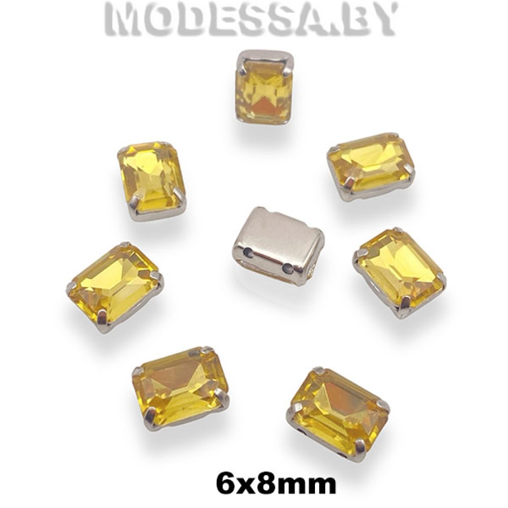 Стразы стеклянные в металлической оправе прямоугольной формы, артикул: 2178. Размер 6х8мм. Пришивные стразы из стекла прекрасно подойдут для декора одежды и аксессуаров. Благодаря своей яркости и блеску, они добавят изделиям изысканности и элегантности. Крепятся к изделию путём пришивания металлической цапы, в которую вставлена страза.