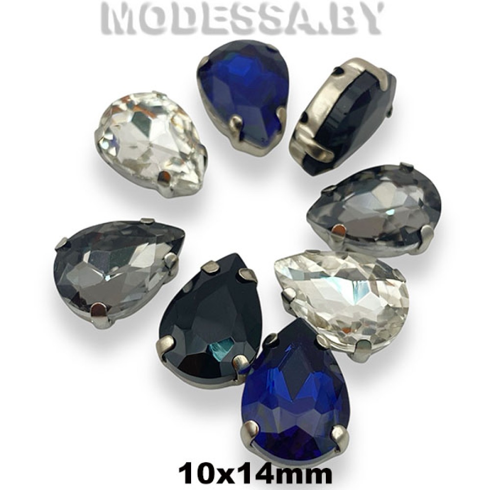 Стразы стеклянные в металлической оправе, артикул: 2061. Размер 10х14мм. Пришивные стразы из стекла прекрасно подойдут для декора одежды и аксессуаров. Благодаря своей яркости и блеску, они добавят изделиям изысканности и элегантности. Крепятся к изделию путём пришивания металлической цапы, в которую вставлена страза.