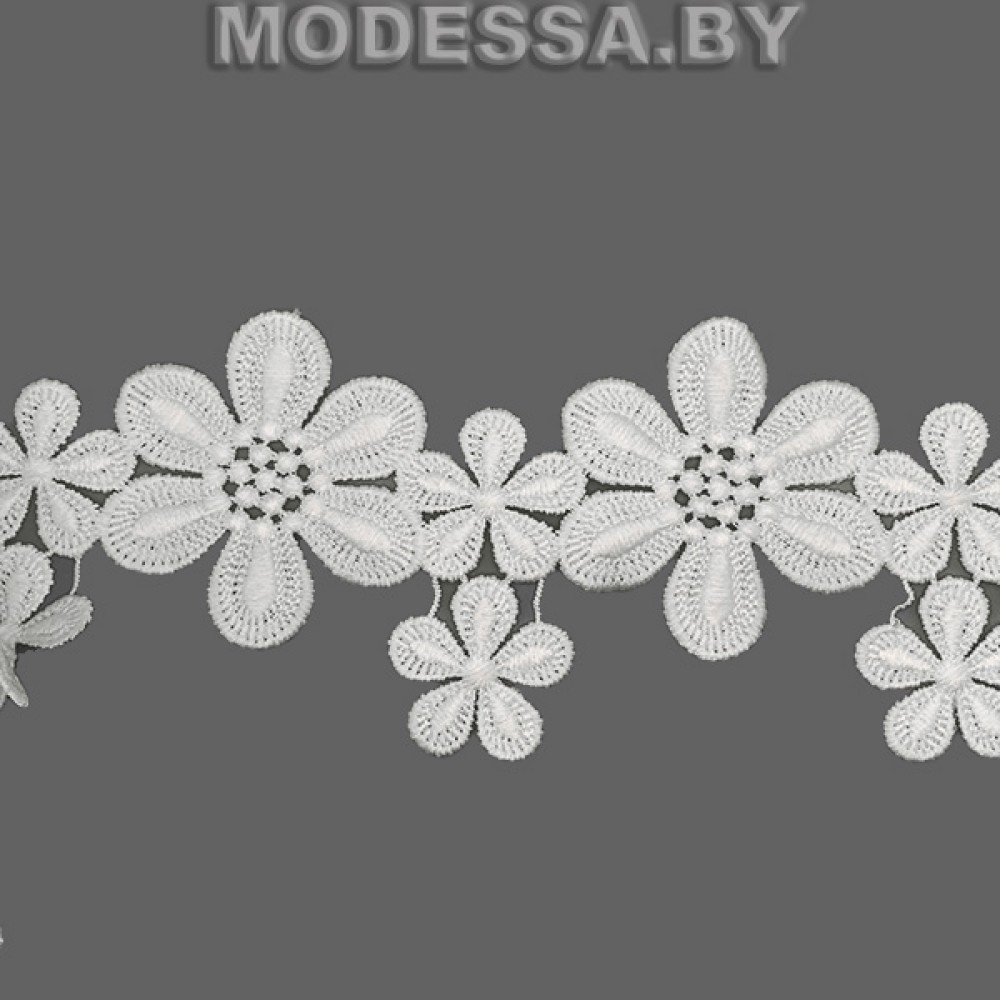 Кружево синтетическое гипюр, артикул: 5829GF. Ширина 75мм. Благодаря жесткости, гипюр хорошо держит форму. Применяется при пошиве одежды, белья и домашнего текстиля, а также используют для декора других материалов.