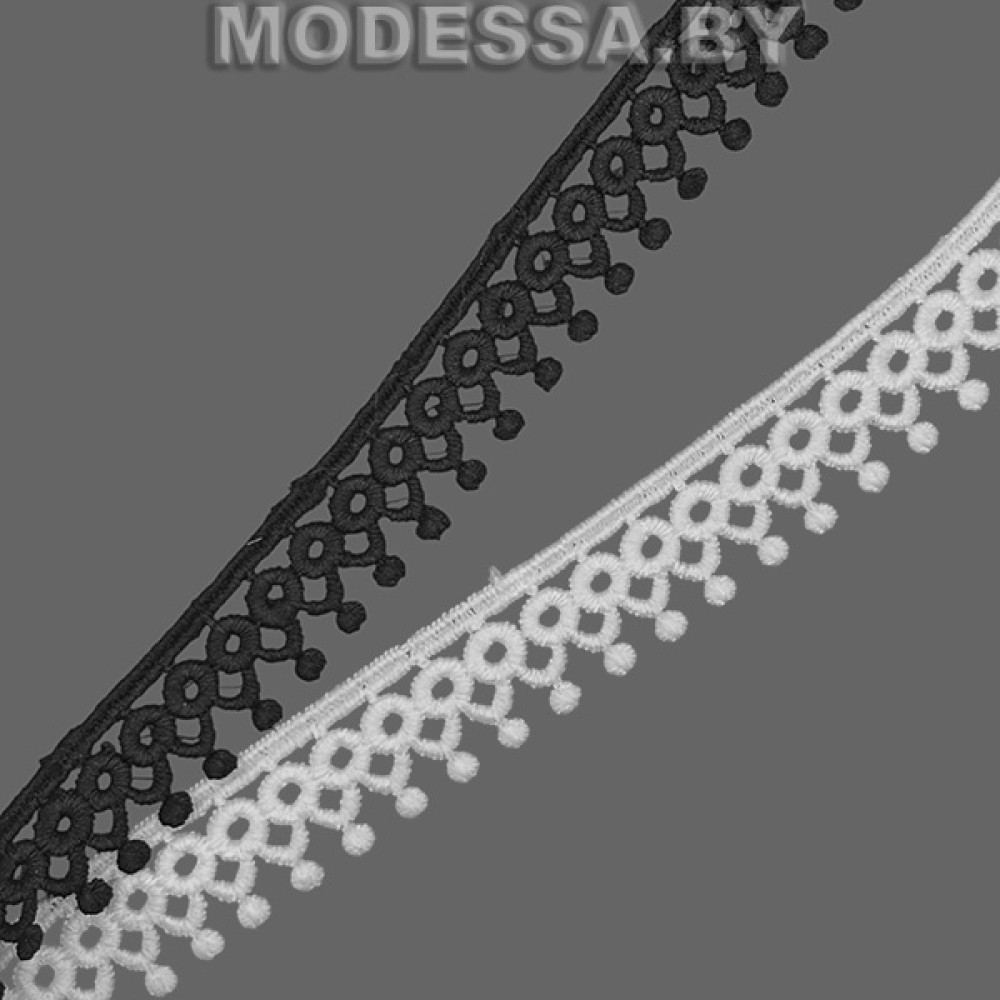 Кружево синтетическое гипюр, артикул: 41740.7. Ширина 18мм. Благодаря жесткости, гипюр хорошо держит форму. Применяется при пошиве одежды, белья и домашнего текстиля, а также используют для декора других материалов.