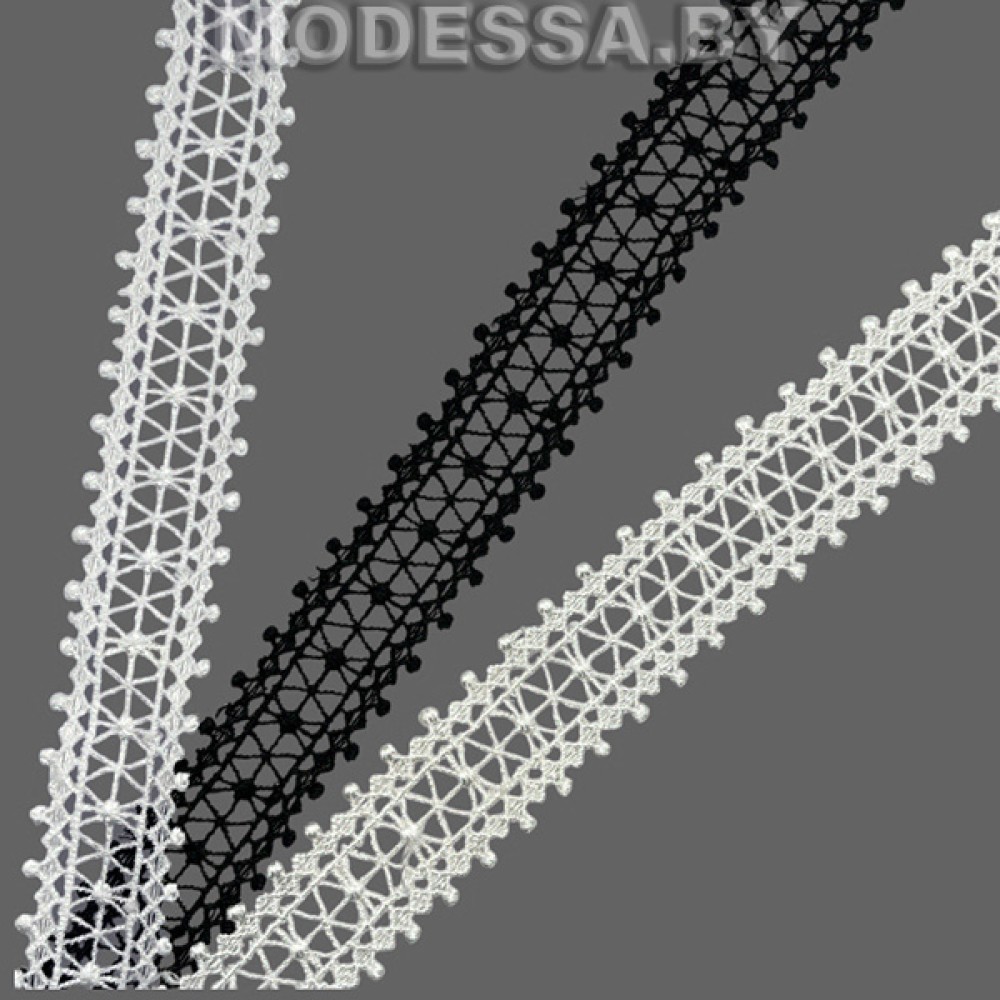 Кружево синтетическое гипюр, артикул: 41740.4. Ширина 25мм. Благодаря жесткости, гипюр хорошо держит форму. Применяется при пошиве одежды, белья и домашнего текстиля, а также используют для декора других материалов.