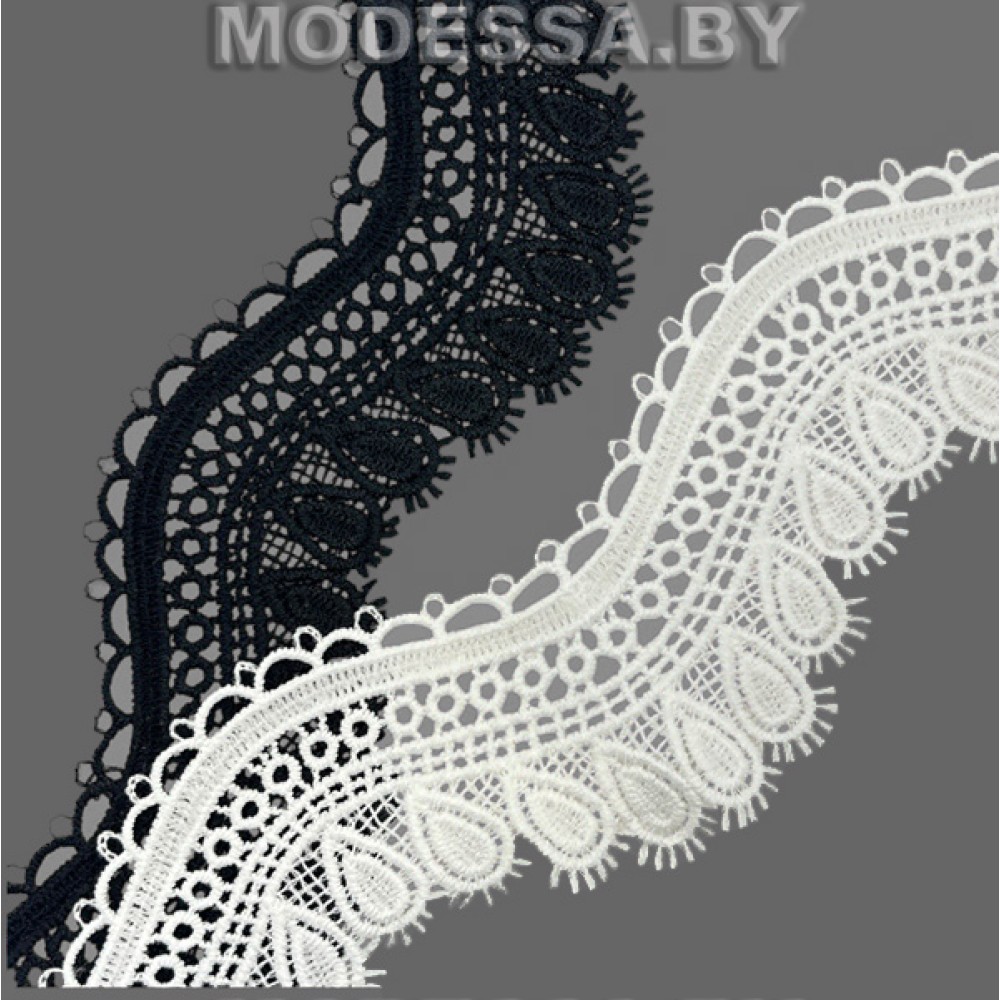 Кружево синтетическое гипюр, артикул: 41751.5. Ширина 65мм. Благодаря жесткости, гипюр хорошо держит форму. Применяется при пошиве одежды, белья и домашнего текстиля, а также используют для декора других материалов.