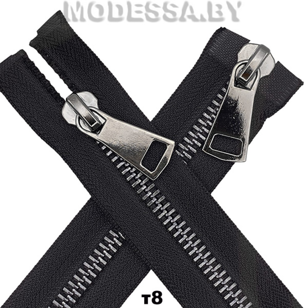 Застежка-молния с зубцами из недрагоценного металла тип 8, двухзамковая. Длина 60см. Используется для пошива разнообразной верхней одежды и аксессуаров: джинсовой одежды, курток, пальто, брюк, сумок, обуви и др.