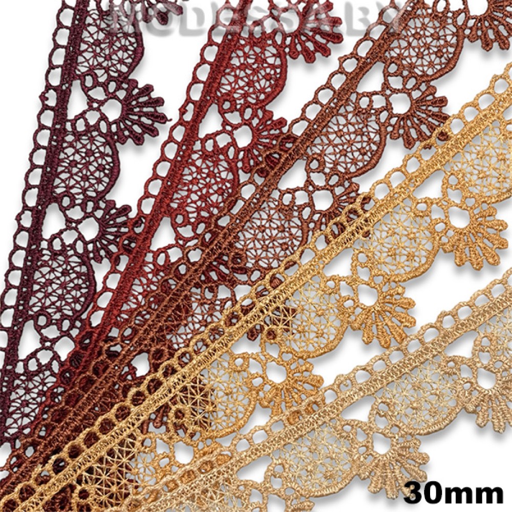 Кружево синтетическое гипюр, артикул: 3081. Ширина 30мм. Благодаря жесткости, гипюр хорошо держит форму. Применяется при пошиве одежды, белья и домашнего текстиля, а также используют для декора других материалов.
