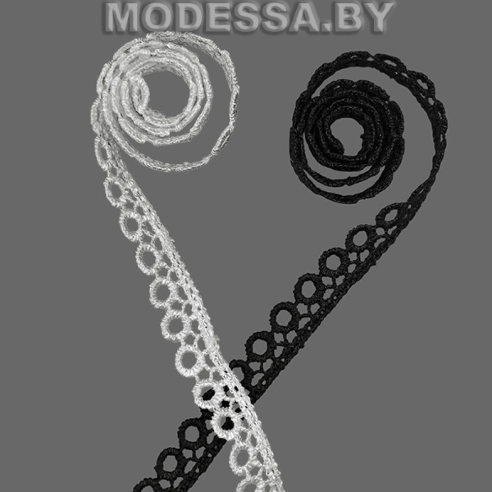 Кружево синтетическое гипюр, артикул: 304.1 W. Ширина 10мм. Благодаря жесткости, гипюр хорошо держит форму. Применяется при пошиве одежды, белья и домашнего текстиля, а также используют для декора других материалов.