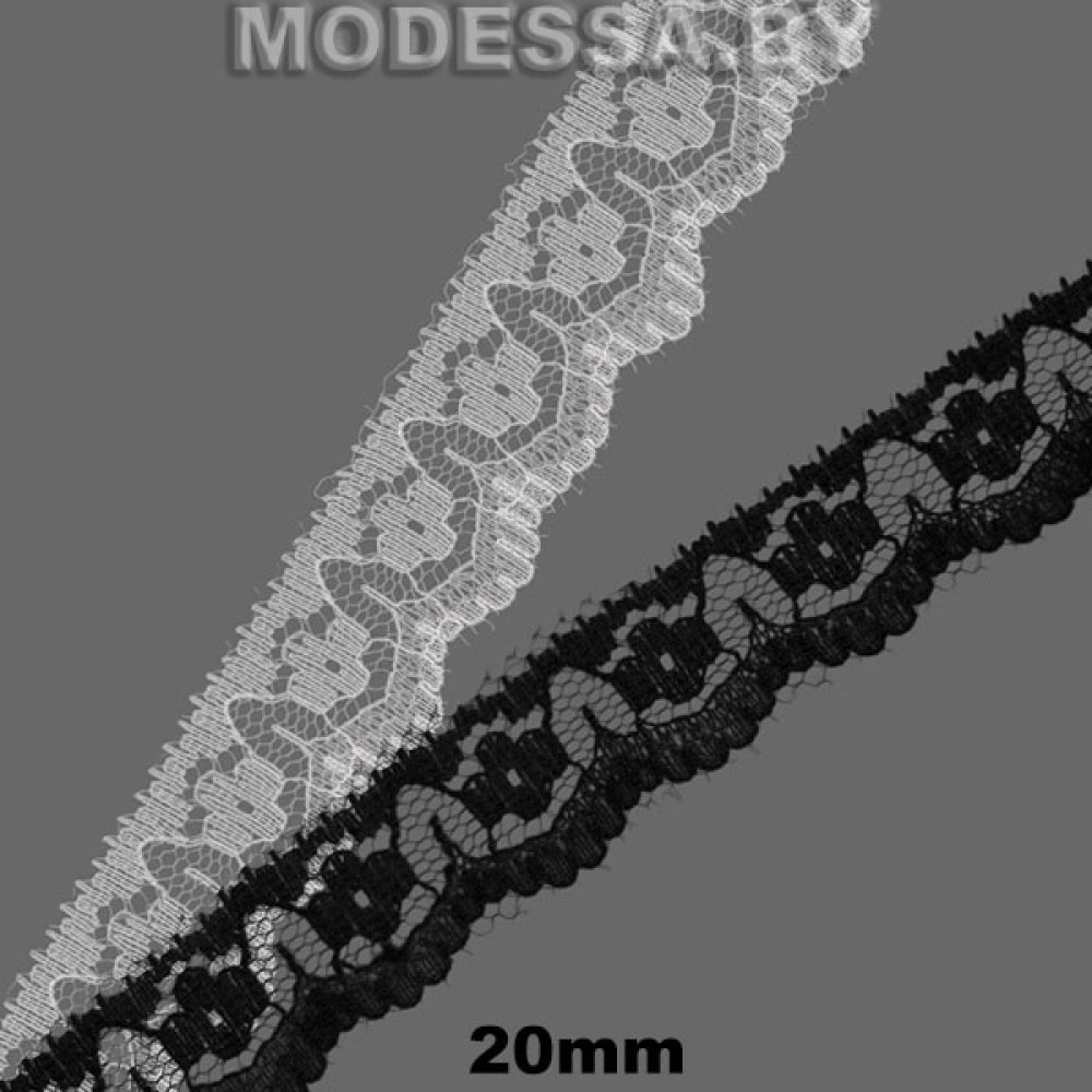 Кружево синтетическое, артикул: 5142-1. Ширина 20мм. Применяется при пошиве одежды, белья и домашнего текстиля, а также используют для декора других материалов.