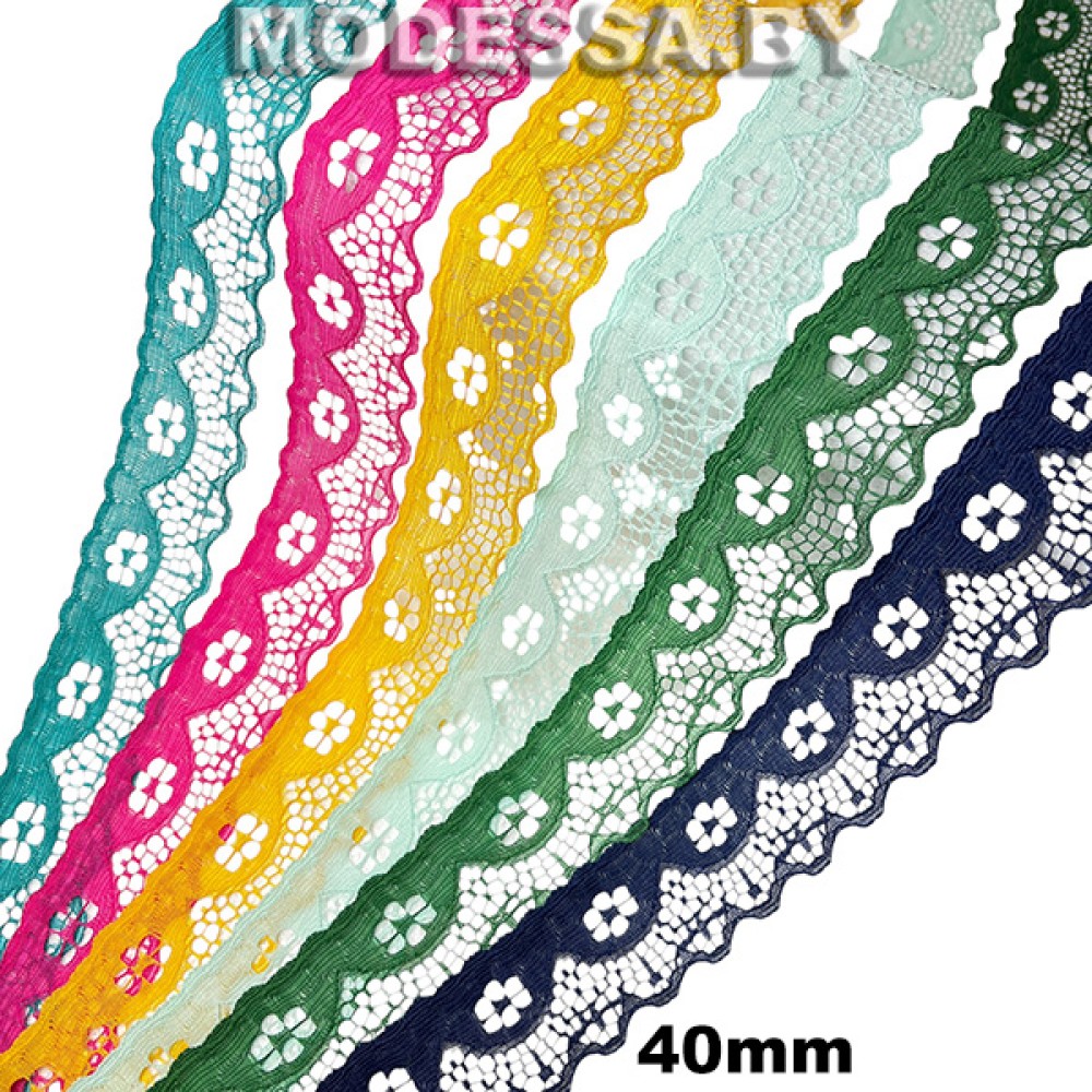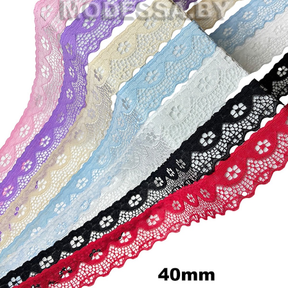 Кружево синтетическое, артикул: G53. Ширина 40мм. Применяется при пошиве одежды, белья и домашнего текстиля, а также используют для декора других материалов.