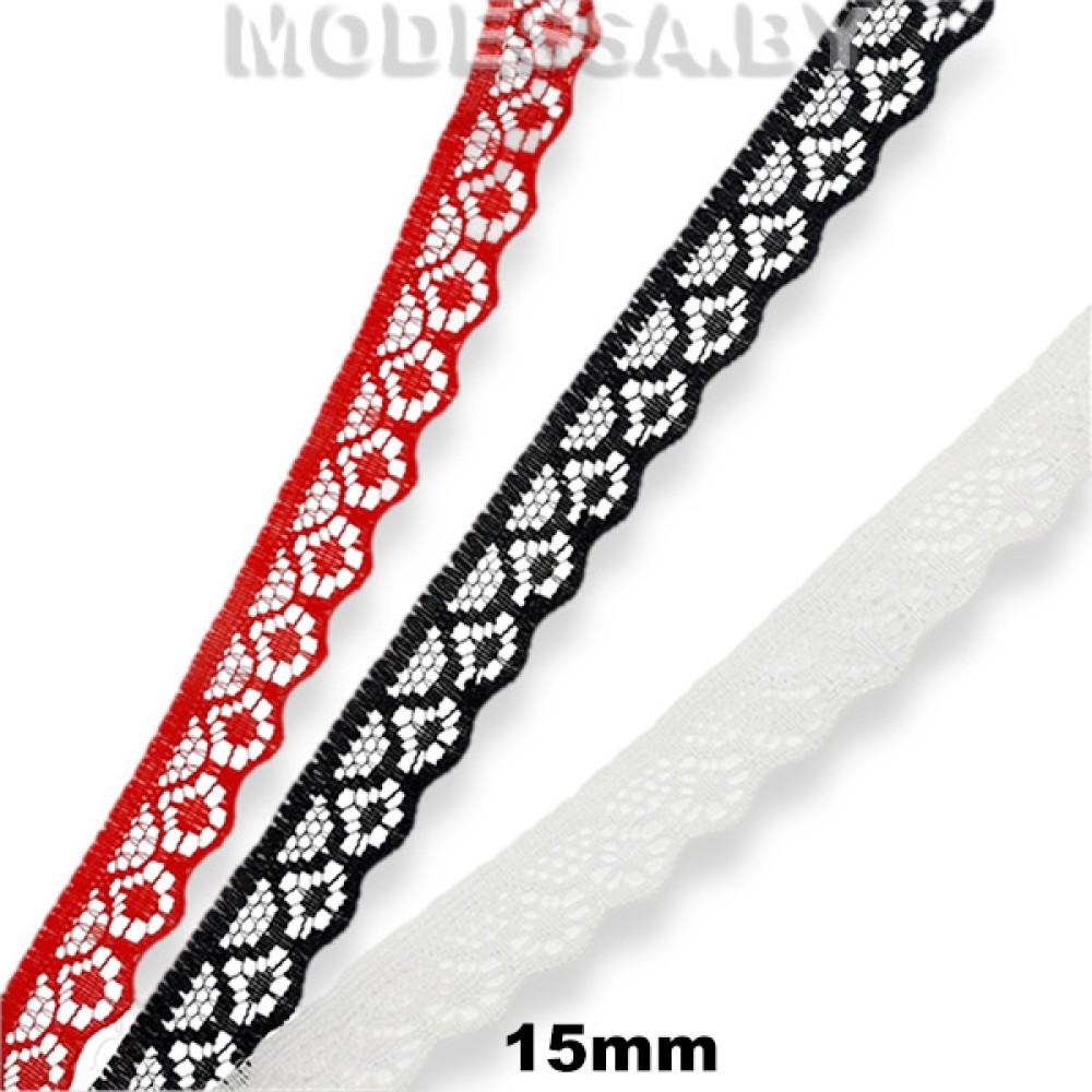 Кружево синтетическое, артикул: 1658-1. Ширина 15мм. Применяется при пошиве одежды, белья и домашнего текстиля, а также используют для декора других материалов.