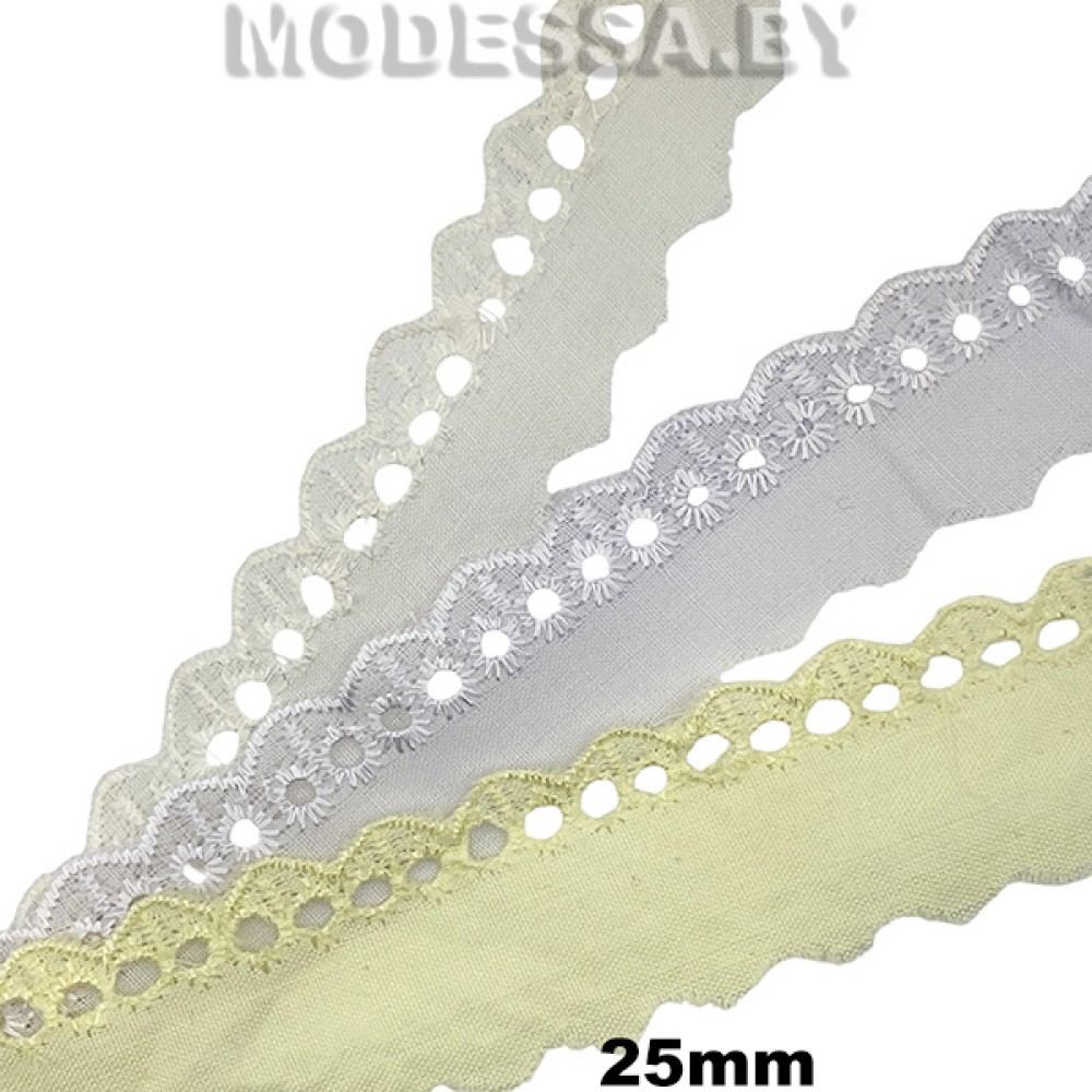 Шитьё хлопковое. Ширина 25мм. Применяется для украшения детской одежды и одежды для новорожденных, летних сарафанов, ночных сорочек, конвертов на выписку, постельного белья, домашнего текстиля и т. д.