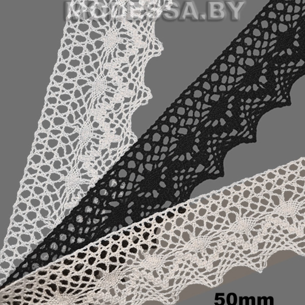 Кружево хлопковое, артикул: В7633. Ширина 50мм. Применяется при пошиве одежды, белья и домашнего текстиля, а также используют для декора других материалов.