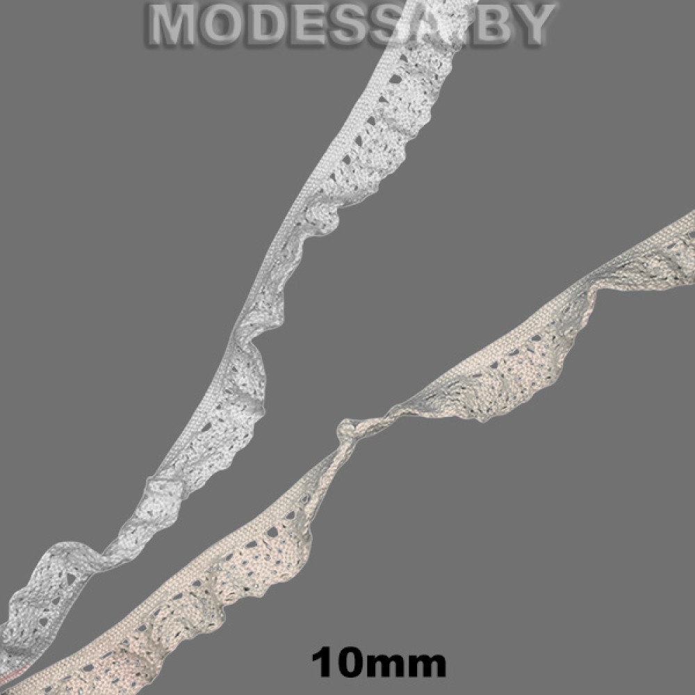 Кружево хлопковое эластичное, артикул: 113-2 S-W. Ширина 10мм. Применяется при пошиве одежды, белья и домашнего текстиля, а также используют для декора других материалов.