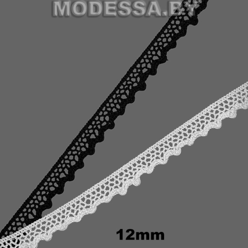 Кружево хлопковое, артикул: A6413. Ширина 12мм. Применяется при пошиве одежды, белья и домашнего текстиля, а также используют для декора других материалов.