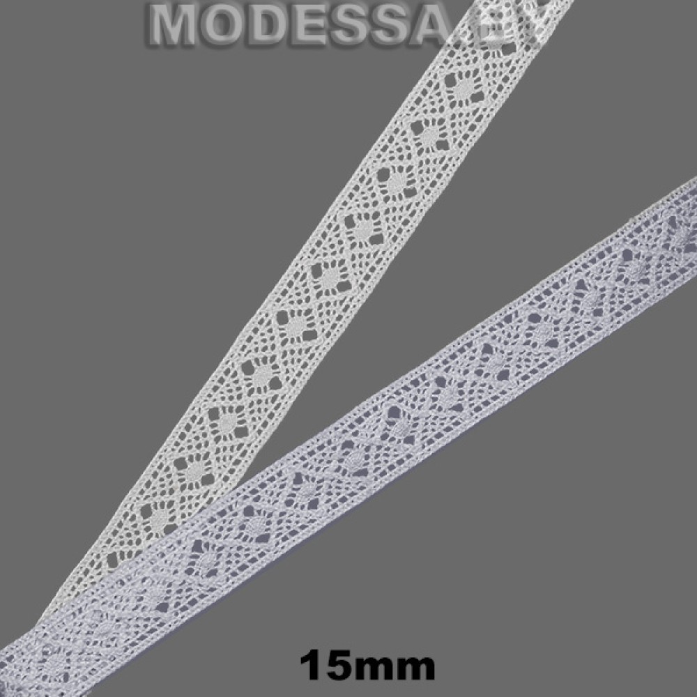Кружево хлопковое, артикул: 7530. Ширина 15мм. Применяется при пошиве одежды, белья и домашнего текстиля, а также используют для декора других материалов.