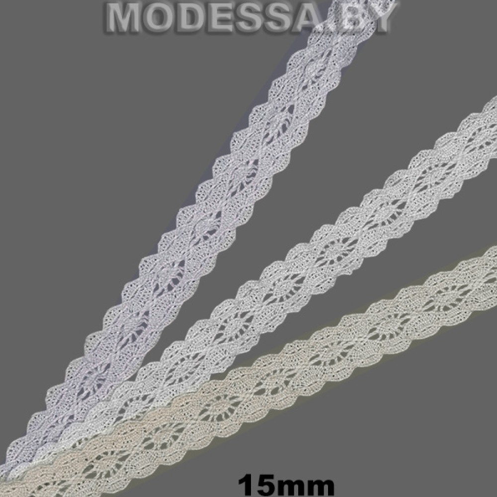 Кружево хлопковое, артикул: 8331. Ширина 15мм. Применяется при пошиве одежды, белья и домашнего текстиля, а также используют для декора других материалов.