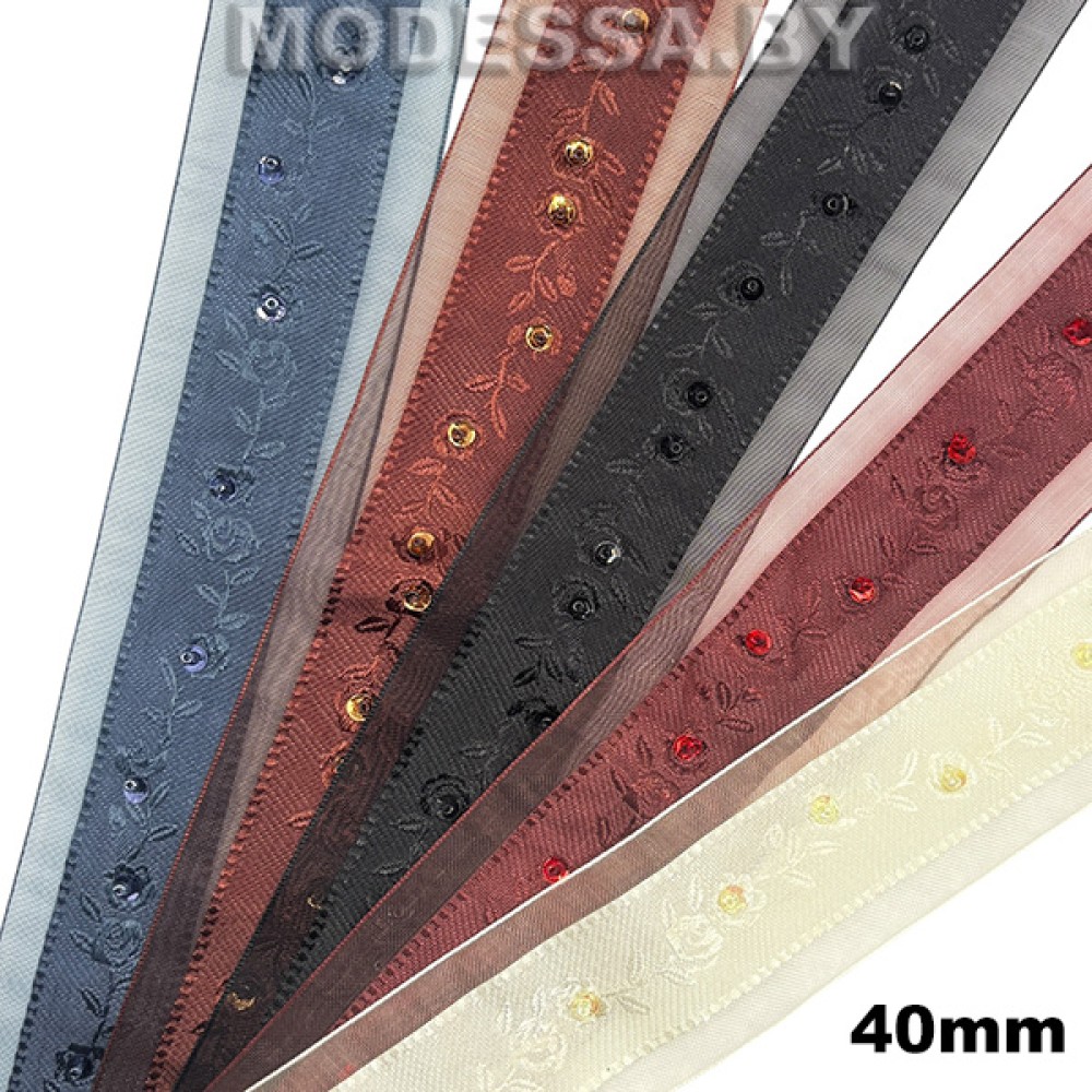Тесьма декоративная с бисером и пайетками, артикул: 2126 А. Ширина 40мм. Используется для декоративной отделки одежды и аксессуаров.