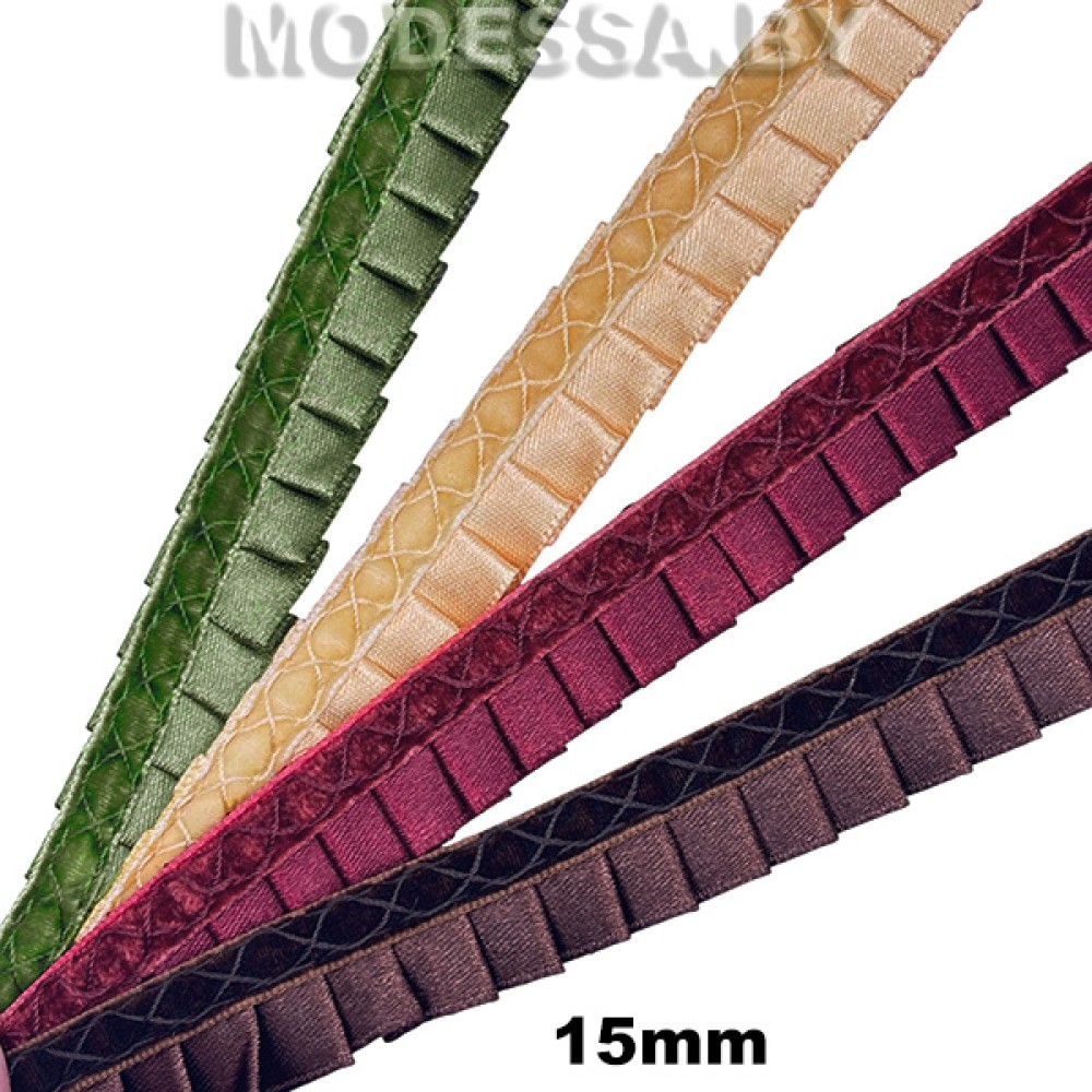 Тесьма декоративная в складку, артикул: 6-S. Ширина 15мм. Используется для декоративной отделки одежды и аксессуаров.