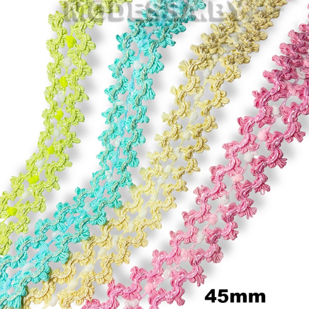 Тесьма декоративная, артикул: 608 KJ. Ширина 45мм. Используется для декоративной отделки одежды и аксессуаров.