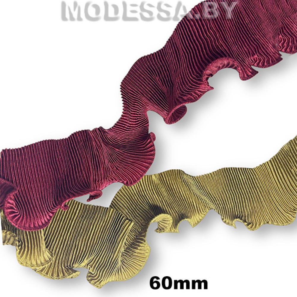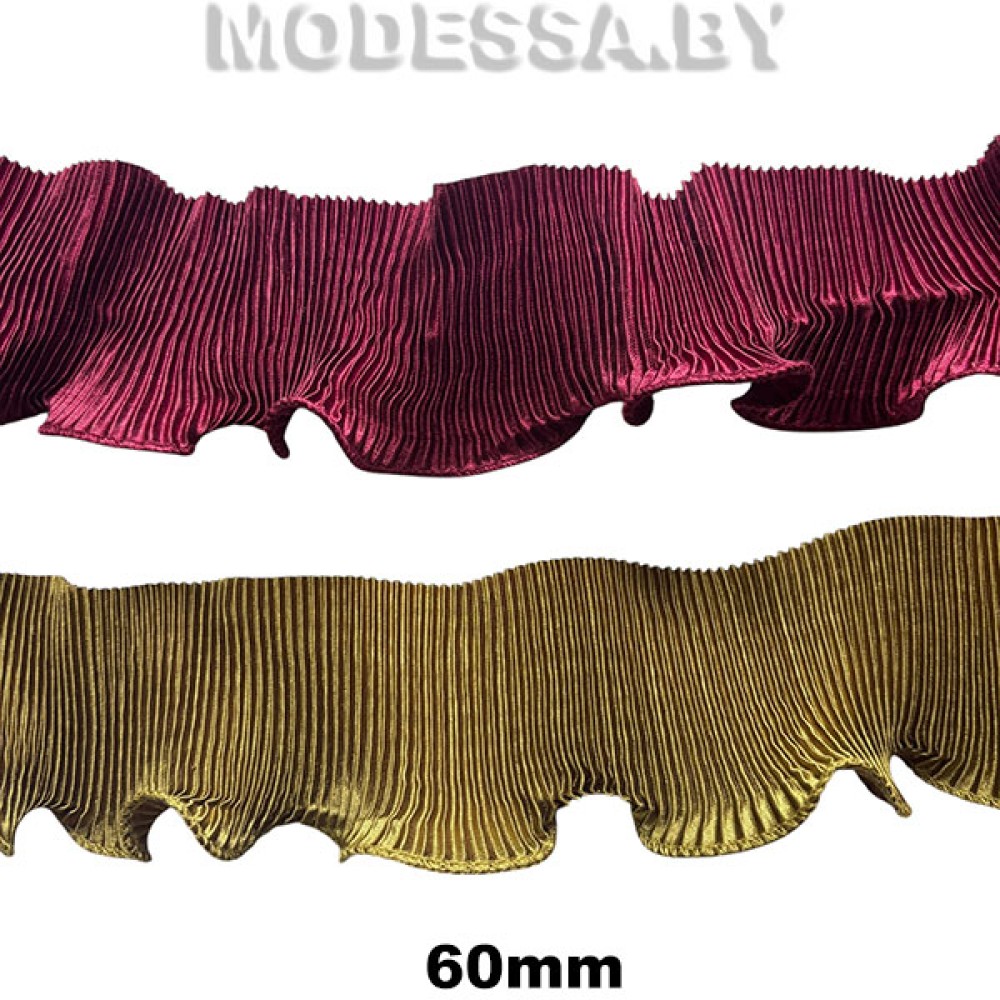 Тесьма декоративная в складку, артикул: 2-S. Ширина 60мм. Используется для декоративной отделки одежды и аксессуаров.